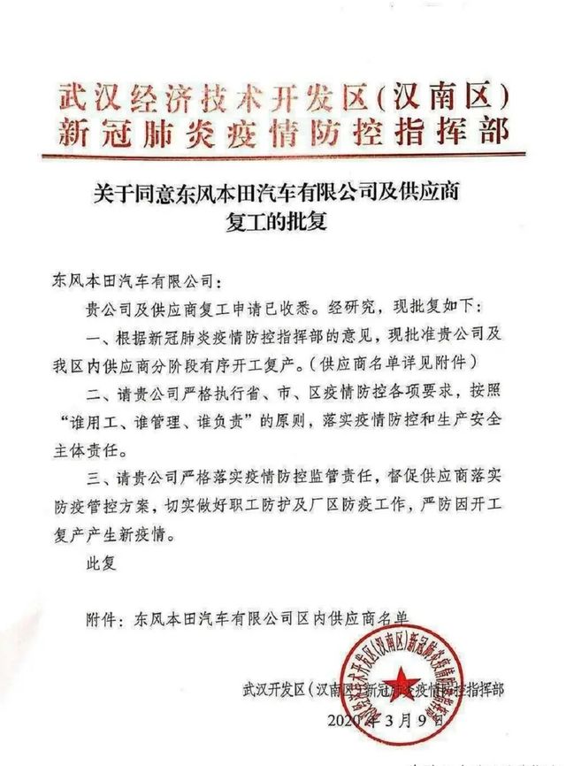 距离2月10日正式返工的日子已经过去一个月,全国各地的汽车主机厂也陆续实现了复工复产。即便处于风暴中心的湖北车企——东风本田和风神汽车,也收到了最新的复工批准。