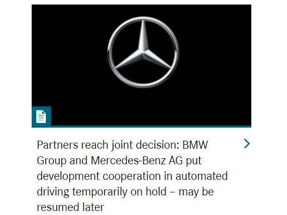 6月19日,全球两大汽车企业戴姆勒集团与宝马集团相继对外宣布,接下来将停止双方针对自动驾驶技术方面的合作项目,但在其他业务中,双方还将开展紧密合作,按计划推进。