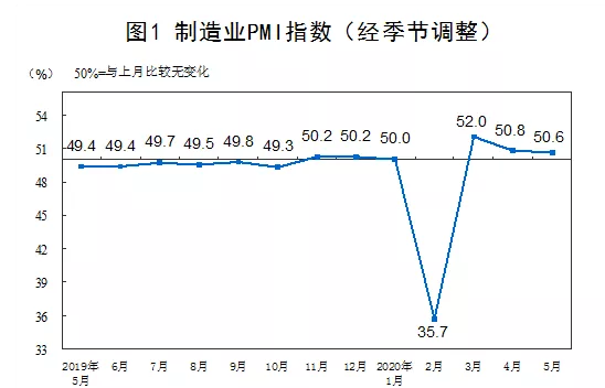 5月31日,国家统计局对外发布5月中国采购经理指数运行情况。数据显示,5月份,中国制造业采购经理指数(PMI)为50.6%,比上月回落0.2个百分点。