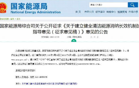 据国家能源局5月19日消息,为促进清洁能源高质量发展,国家能源局研究起草了《关于建立健全清洁能源消纳长效机制的指导意见(征求意见稿)》。现向社会公开征求意见,征求意见时间为2020年5月19日至2020年6月19日。