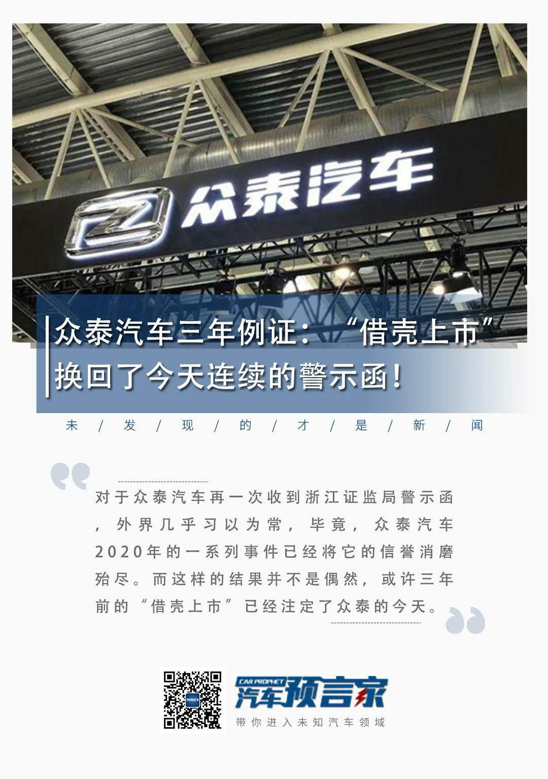 对于众泰汽车再一次收到浙江证监局警示函,外界几乎习以为常,毕竟,众泰汽车2020年的一系列事件已经将它的信誉消磨殆尽。而这样的结果并不是偶然,或许三年前的“借壳上市”已经注定了众泰的今天。