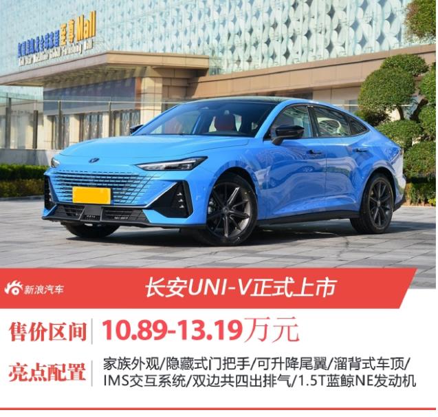 新浪汽车讯 2022年3月21日,长安UNI-V正式上市,配有可升降尾翼以及阀门排气系统。动力方面,新车搭载1.5T蓝鲸NE发动机,根据配置共推出4款车型,售价10.89-13.19万元。