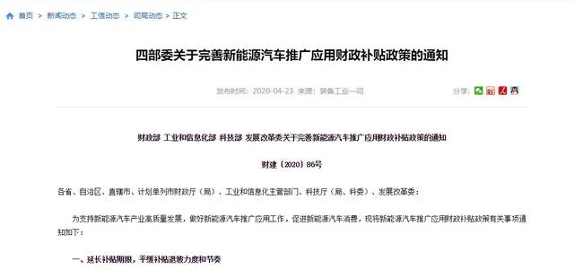 概述今日聚焦:4月23日,财政部、工信部、科技部、发改委四部委联合发布关于完善新能源汽车推广应用财政补贴政策的通知。通知从即日起实施,2020年4月23日至2020年7月22日为过渡期。由此引起众多媒体的分析讨论,其中“特斯拉”成为讨论的焦点之一。