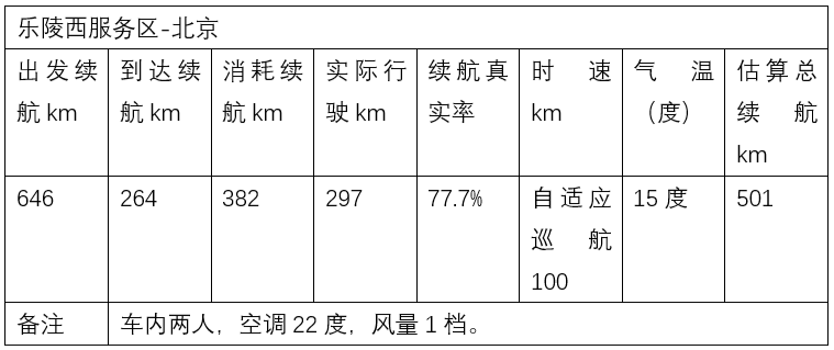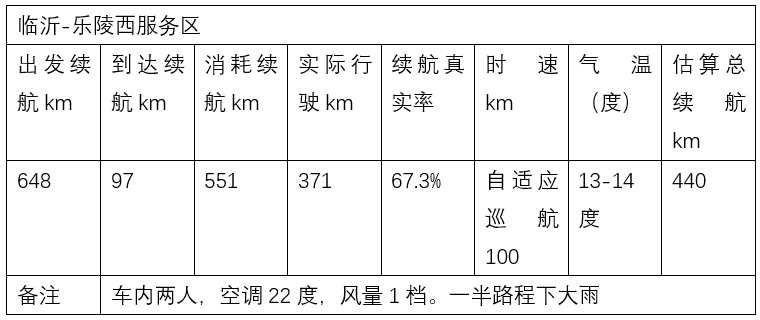 如上表:这段路程是它续航表现最给力的一段,巡航车速为110km,估算总续航水平能达到555km,已经完胜绝大多数电动车的高速续航。