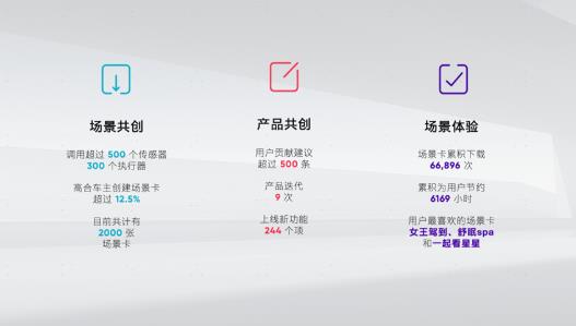 自2021年5月份开启交付以来,“HiPhi Play”场景卡累积下载超过6万次,使用场景卡的用户数量比例高达72%,创建过场景卡的用户比例达12.5%,极客世界场景卡的使用,为高合HiPhi X用户节约的时间累积高达6169小时,这其中有用户单一场景卡一天内的使用频次高达65次。共创的场景卡覆盖自驾出游、露营、日常通勤、亲子出游、节日庆典等多个场景,车内外的科技智能,正在不断被用户发掘和提升。