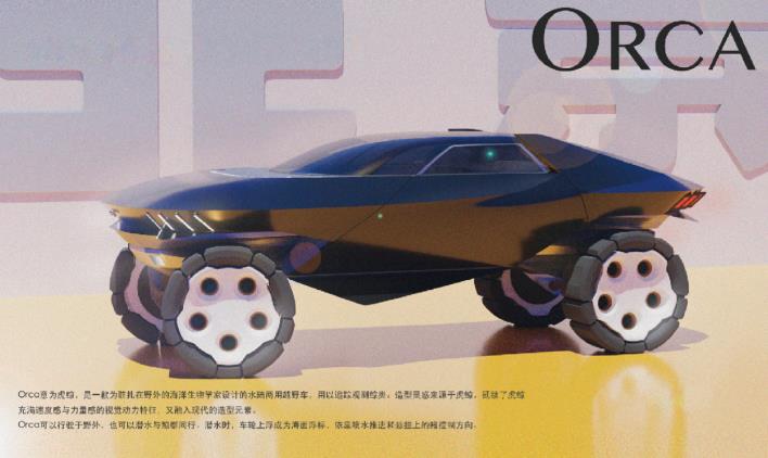 其中,荣获一等奖的的京鲸号,以鲸鱼为原型,混合多种能源作为动力,是一台海陆空通用的越野车,将未来感演绎的淋漓尽致;二等奖的虎鲸是一款为驻扎在极地的海洋生物学家设计的水陆两用电动越野车,设计野范十足,既天马行空,也理所当“燃”;与虎鲸并列二等奖的“Volcano2040”,针对特定环境的北京越野VOLCA-NO达喀尔赛车进行构想,力求延续真正的北京越野精神。另外,雨林两栖、兔子的全地形战备、城际之巅这三幅作品以突破天际的想象收获了三等奖,让我们对“明日座驾”有了更具体的想象。