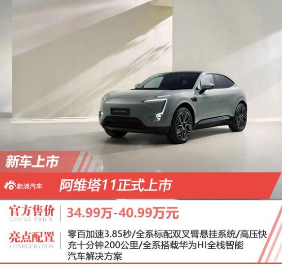 阿维塔11正式上市 两种续航售价34.99-40.99万元