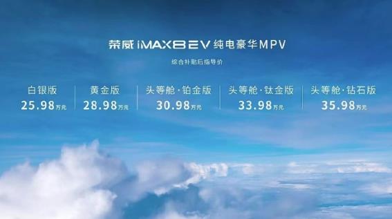 荣威iMAX8纯电版正式上市 售价25.98-35.98万元