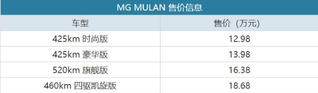 售12.98-18.68万元,上汽MG MULAN正式上市