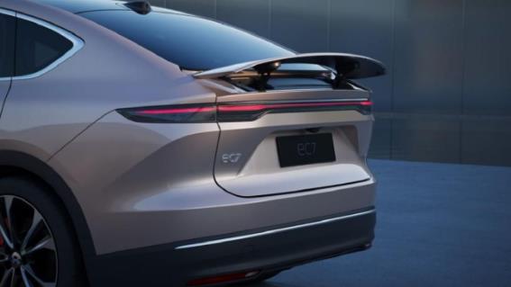 尾部方面,Coupe SUV造型带来紧凑且上翘的动感尾部,家族式的贯穿式尾灯设计进一步增强了美感。值得一提的是,EC7是蔚来首款采用主动升降式尾翼的量产车型,其尾翼采用反向机翼式尾翼翼型,支架采用七连杆结构,有自动和手动两种模式