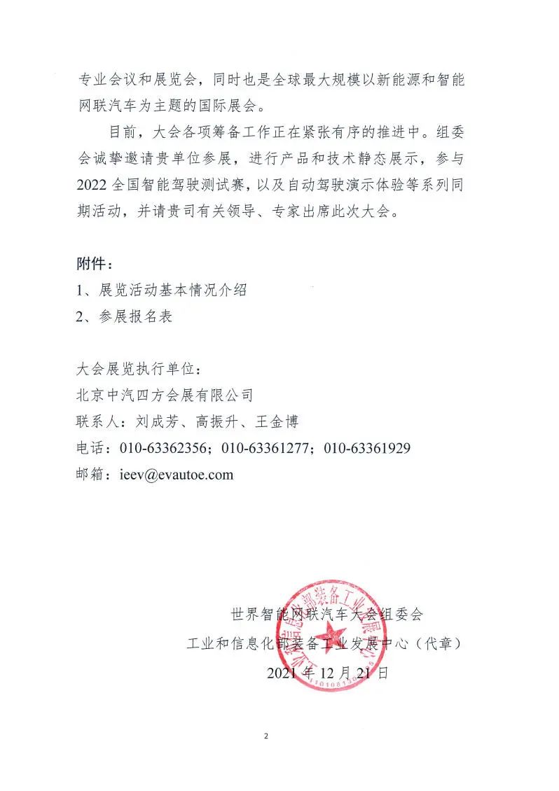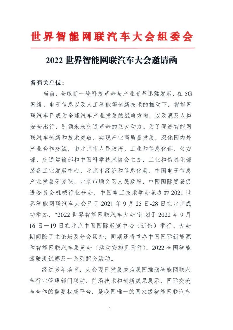 红头:2022世界智能网联汽车大会邀请函