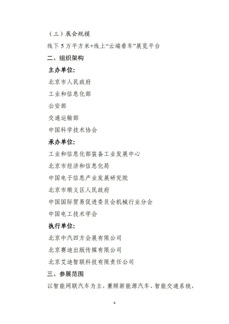 由北京市人民政府、工业和信息化部、公安部、交通运输部和中国科学技术协会主办,工业和信息化部装备工业发展中心、北京市经济和信息化局、中国电子信息产业发展研究院、北京市顺义区人民政府、中国国际贸易促进委员会机械行业分会、中国电工技术学会承办的“2022世界智能网联汽车大会”将于2022年9月16日-19日在北京中国国际展览中心(新馆)举行。