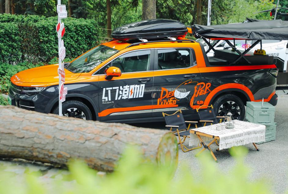 如果更通俗的解释,纯电皮卡不再是一台简单的车,在户外新三电技术、云计算技术、物联网技术的加持下,成为了户外移动物联平台、综合电力终端和多元拓展平台。一台RD6创业版就是一个移动店铺,满足户外经营的所有需求。