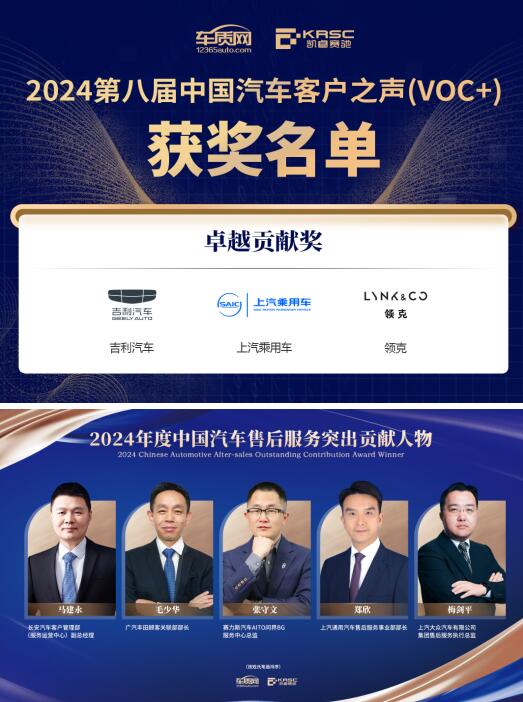 会议还现场揭晓了2024年中国汽车客户之声(VOC+)售后服务满意度奖、售后服务标杆品牌、卓越贡献奖,以及2024年度中国汽车售后服务突出贡献人物奖的归属。