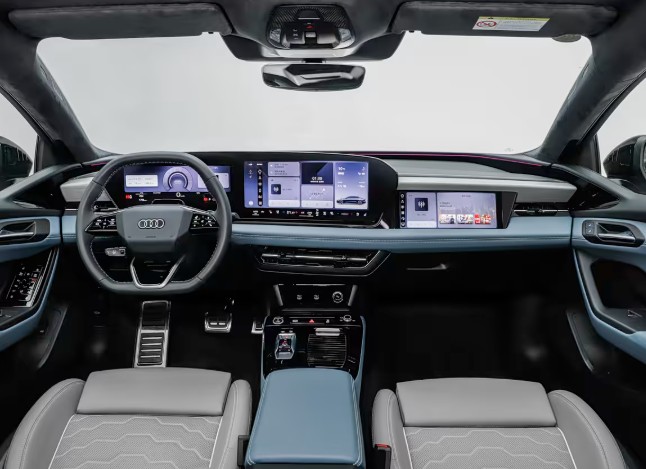 内饰方面,新车由11.9英寸奥迪虚拟座舱、14.5英寸MMI中控屏、10.9英寸副驾娱乐屏、AR-HUD抬头显示、电子外后视镜双屏组成六屏联动系统。其中副驾屏支持隐私模式,第二代增强现实抬头显示AR-HUD可显示速度、交通标识、导航等信息;第二代后视镜双屏采用高清显示屏,提升雨雾、低光环境下清晰度。中控屏内置Avatar情感化语音形象和智能语音助手,支持“可见即可说”,60秒内可连续识别10条指令。