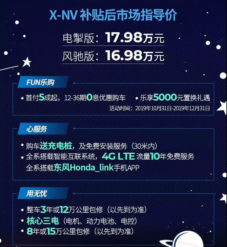 东风本田纯电动车X-NV上市 补贴后售16.98万元起