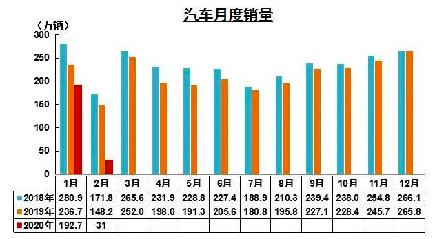 从1月底以来,新冠肺炎疫情在中国迅速爆发。近两个月的时间中,中国汽车市场受到很大程度的影响。据中汽协数据显示,2月中国汽车产销分别完成28.5万辆和31万辆,环比平均下降83.9%,同比分别下降79.8%和79.1%。1-2月汽车产销分别完成204.8万辆和223.8万辆,产销同比分别下降45.8%和42%。对于中国汽车产销的大幅下滑,中汽协表示主要受新冠肺炎疫情影响,与真实汽车需求关系不大。