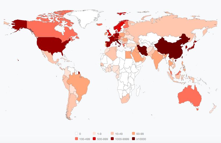 从全球汽车市场情况看,目前整体还未出现产销方面的变化,但疫情已经开始严重影响中国之外的大多数国家。数据显示,截至3月9日,全球104个国家有发现新冠肺炎确诊病例,除中国外,全球累计确诊新冠肺炎28165例,累计死亡706例。
