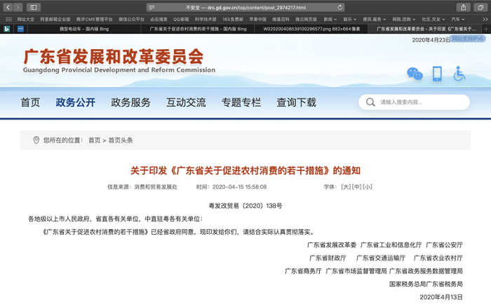 4月15日,广东省出台《广东省关于促进农村消费的若干措施》,明确提出要大力促进农村消费,其中首条就提出推动汽车下乡,促进农村汽车消费。