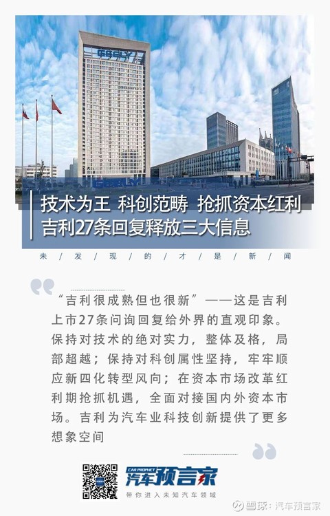 技术为王 科创范畴 抢抓资本红利 吉利27条回复释放三大信息