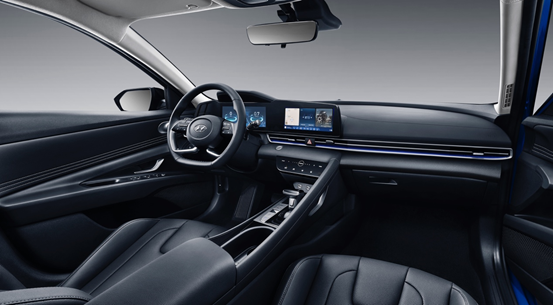 车内运动感、科技感的氛围也是设计师着力想要为第七代伊兰特的用户营造的。低矮、宽敞的结构设计从车门一直延伸到中央扶手,主驾驶采用包裹式设计,创造出以驾驶者为中心的沉浸式座舱的感觉。同级独有的双10.25英寸智慧连体屏,配合贯穿式的狭长空调出风口和64色氛围灯,又营造出了强烈的高级感,并最终实现了第七代伊兰特由外至内的全面焕新。
