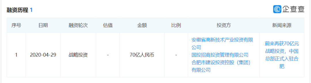2020年4月,蔚来汽车转投合肥,蔚来中国获得70亿元投资,汽车预言家通过企查查数据获悉,在战略投资者中,合肥市建设投资控股(集团)股份有限公司为国有独资有限责任公司,由合肥市国有资产管理委员会投资;安徽省高新技术产业投资有限公司是安徽省投资集团控股公司(安徽省国资委控股)下属的全资公司。对此,分析人士指出,从企业属性分析,两方投资人均为安徽省、合肥市国资属性的地方产业投资企业。