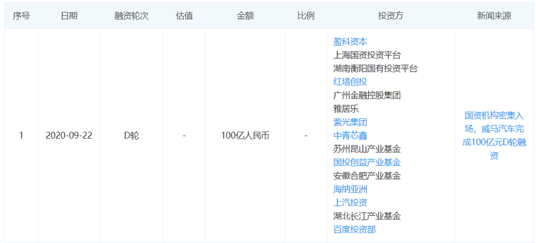 当时令业界较为震惊的是,国投招商参与对蔚来的投资。就在9月22日,威马汽车宣布完成总额100亿元的D轮融资,使其成为造车新势力史上最大一笔单轮融资。在威马汽车此轮融资中,有多家具有地方国资背景的产业基金参与,包括上海国资投资平台和上汽集团,以及湖北长江产业基金、苏州昆山产业基金、湖南衡阳国有投资平台、安徽合肥产业基金等国有产业投资者。